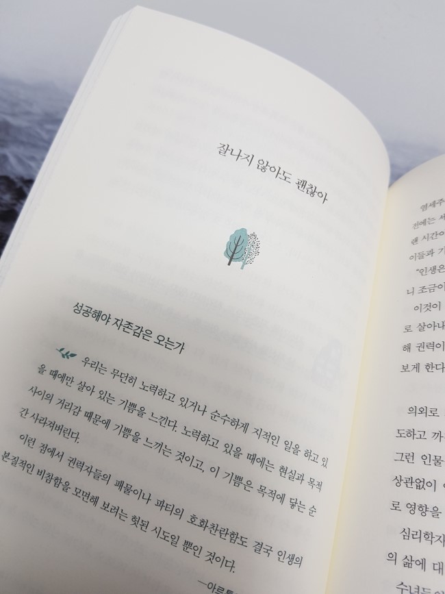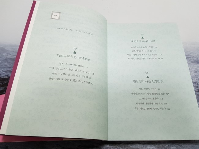 책을 찬찬히 살피다보니 잘나지 않아도 괜찮아 라는 문구가 내 눈에 콕 박혔다. 성공이라는 단어는 한낮의 낮잠처럼 정말 달콤한 단어다. 하지만 성공을 해야만 높은 자존감을 가질 수 있는가라는 질문에는 높은 자존감과 성공이 꼭 필연적으로 이어지지 않을 거라는 대답을 하고 싶다. 목차만 봤을 때도 맞아 맞아 라고 고개를 끄덕이는 부분이 분명히 있다. 이 책을 읽고 내가 생각하는 자존감과 얼마나 일맥상통할까 또 내가 모르는 부분은 무엇이 있을까 점점 궁금해지는 책이다.